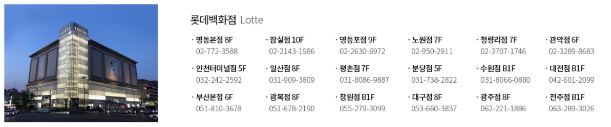 가장 많은 지점을 보유하고 있는 롯데백화점 정보입니다. 무려 18개 지점이 있습니다. 자코모 소파를 직접 눈으로 확인하고 싶다면 롯데백화점에 있는 지점을 이용하는 것이 좋을 것 같습니다.