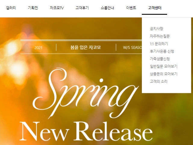 고객센터 하위 메뉴에 가죽 샘플 신청이라는 메뉴가 있습니다. 해당 메뉴에 이동하게 되면 자코모 소파에 가죽을 확인 할 수 있도록 샘플을 고객에게 제공하는 서비스 입니다.